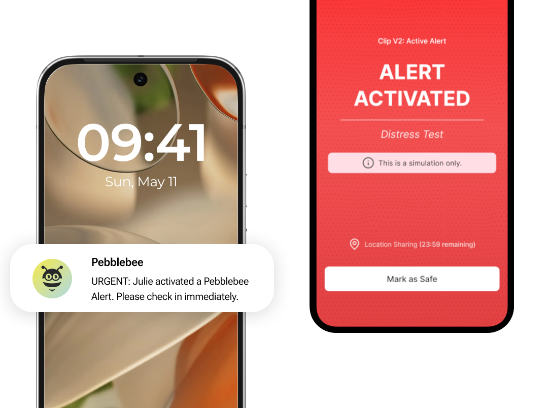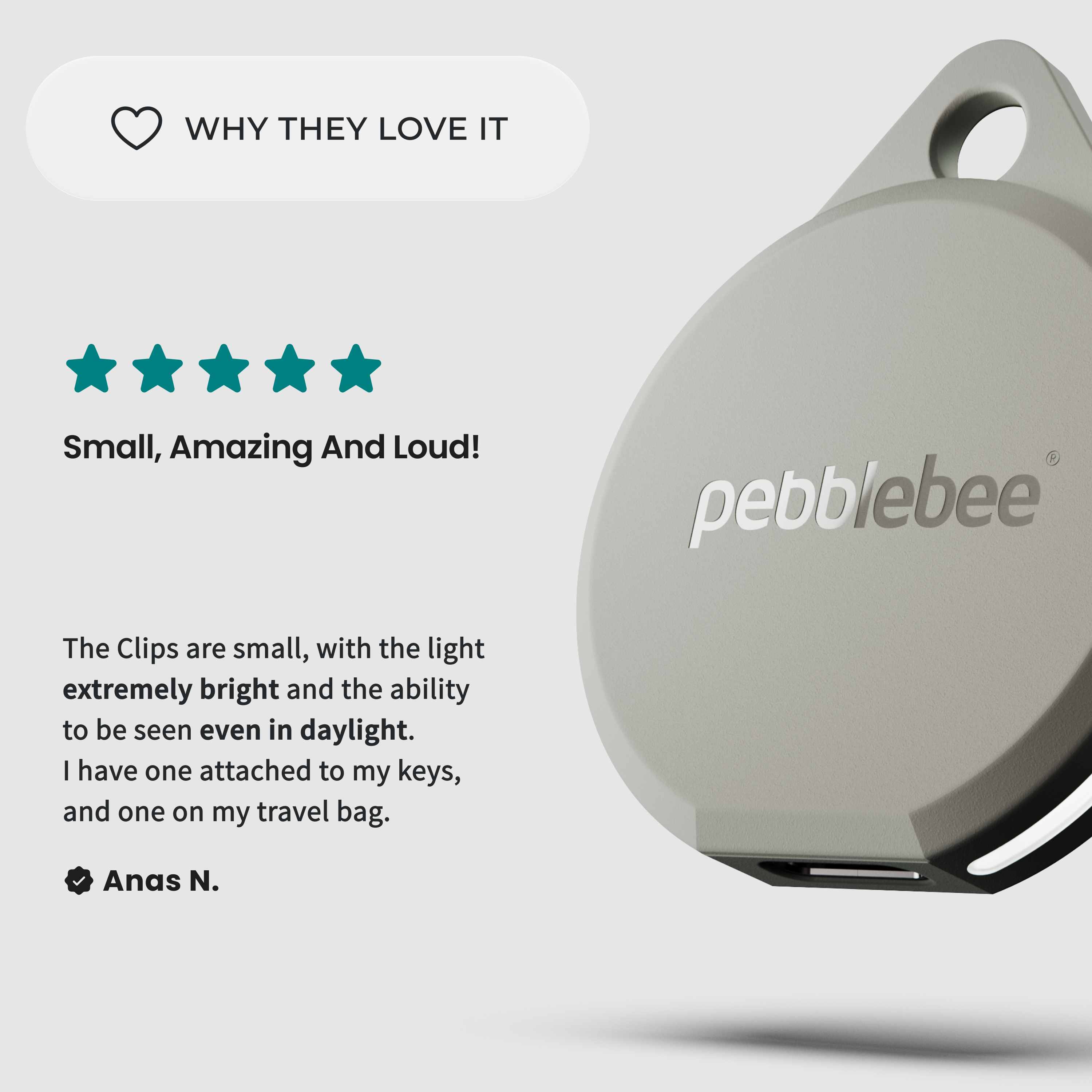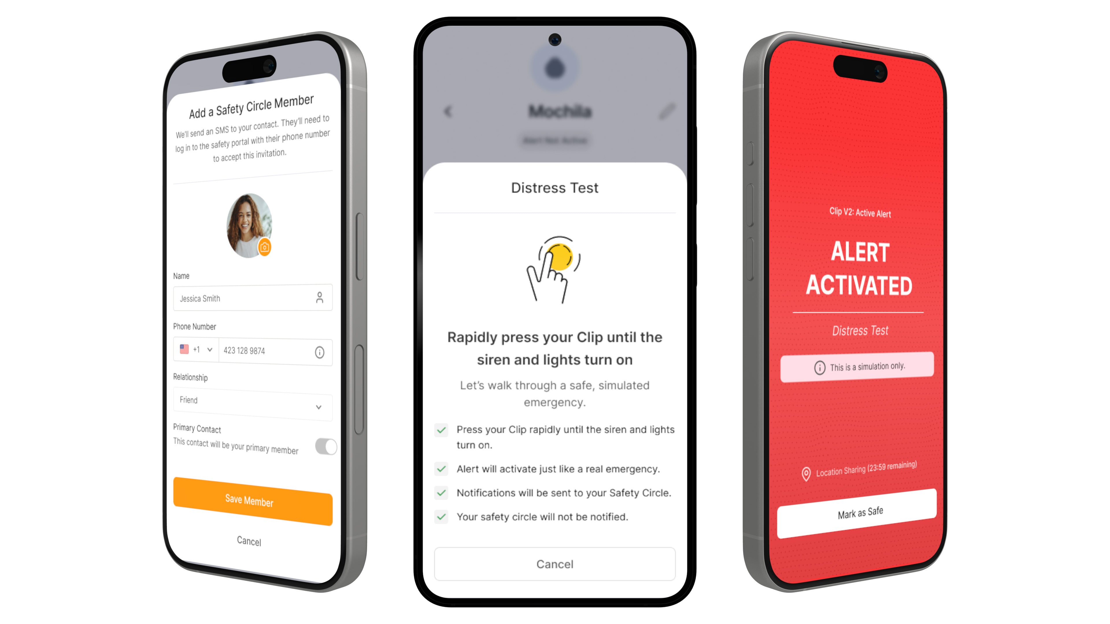 Alert, a feature built into every Clip, turns an ordinary keychain into a lifeline: rapid presses activate a strobe, a piercing siren, and sends your location to your Safety Circle of trusted contacts.