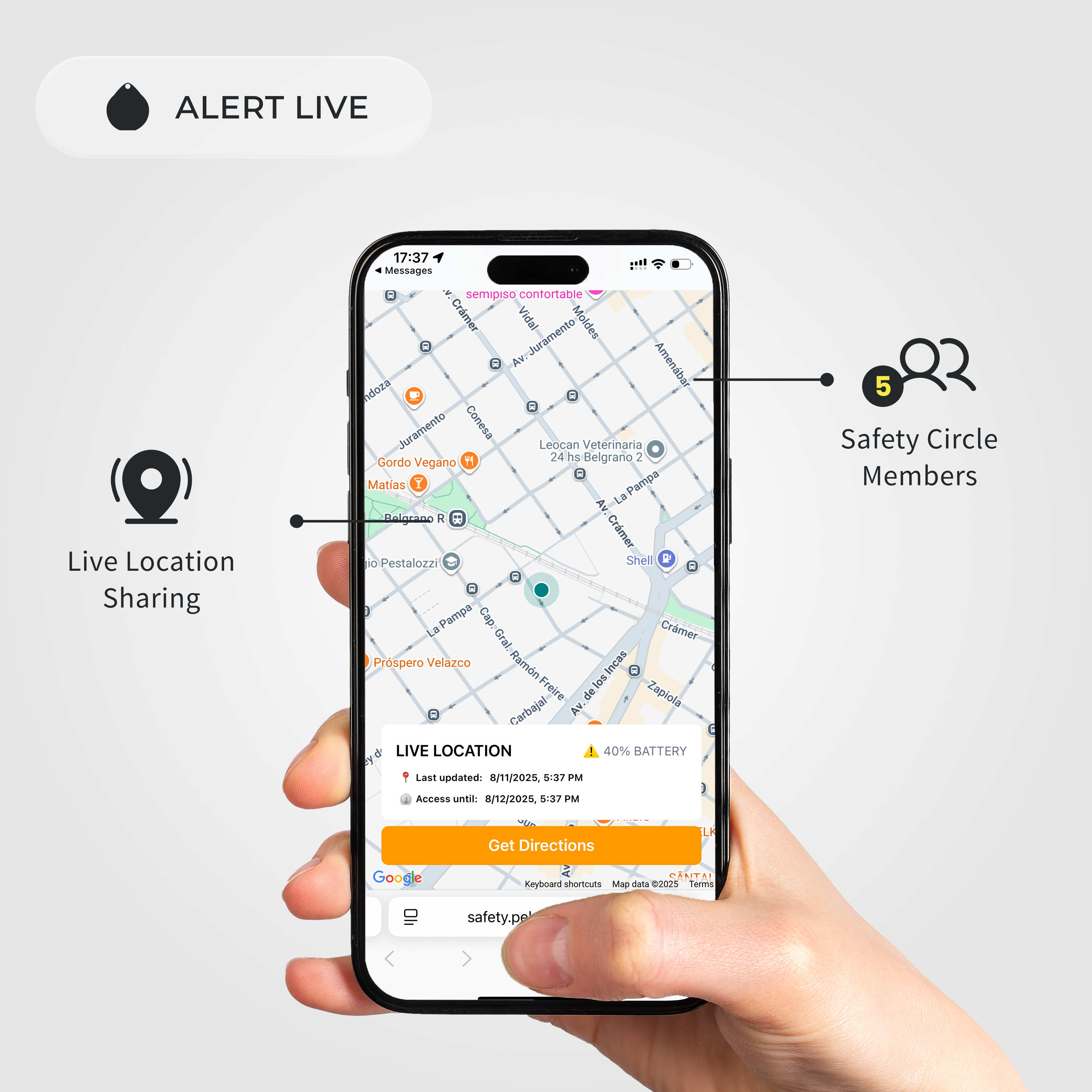 Available in both a free version and the all-new Alert Live subscription with live location sharing and expanded safety circle.