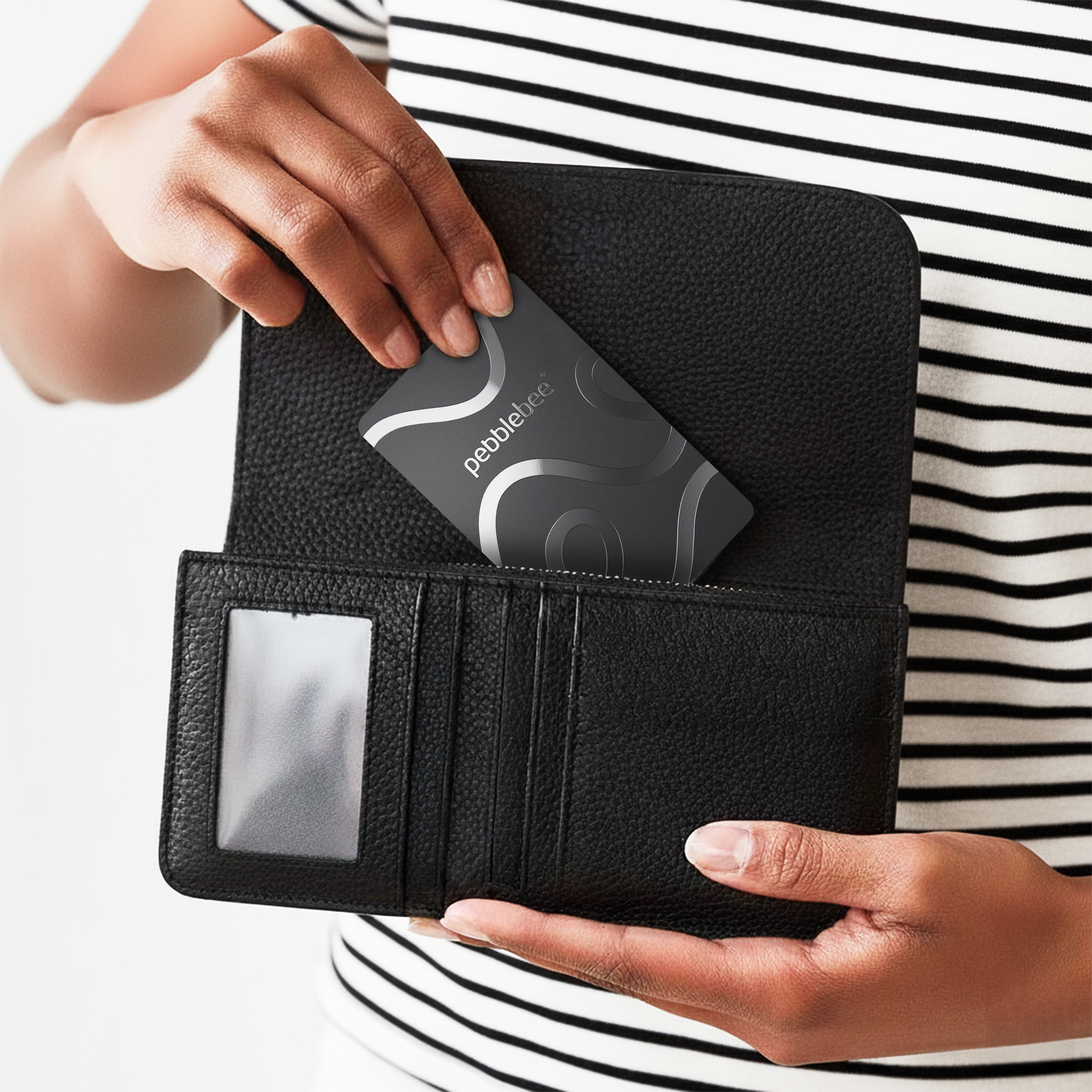 The Pebblebee Card 5 is an ultra-thin, rechargeable Bluetooth item finder that fits effortlessly into wallets, passport holders, laptop sleeves, or any slim space. Measuring just a few millimeters thick, it adds minimal bulk while providing maximum peace of mind.